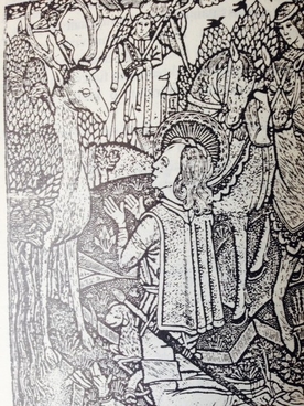 Hubertas - medžiotojų globėjas. 1470 m. metalo raižinys